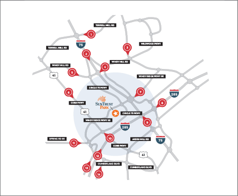 Centrally located on 74 acres in northwest Atlanta’s platinum triangle, this vibrant development seamlessly brings together the new SunTrust Park and surrounding community of shopping, dining, entertainment, living and working.